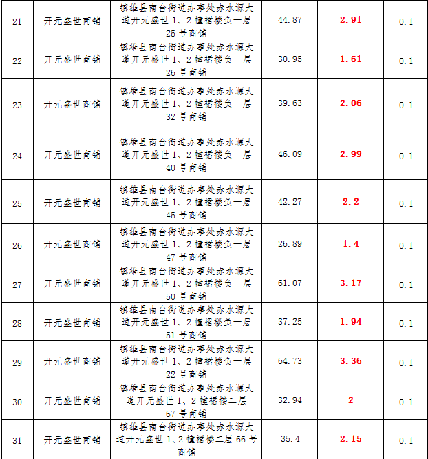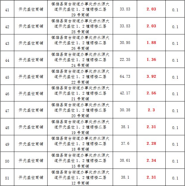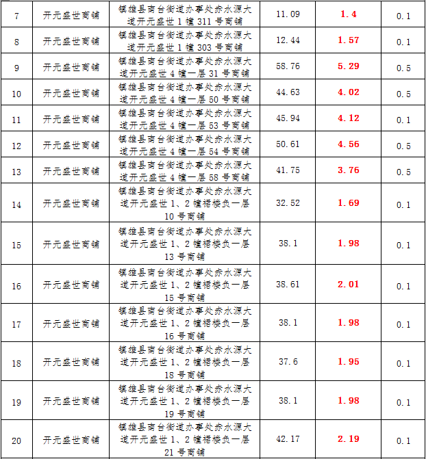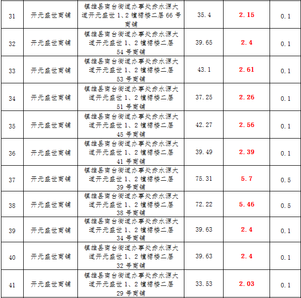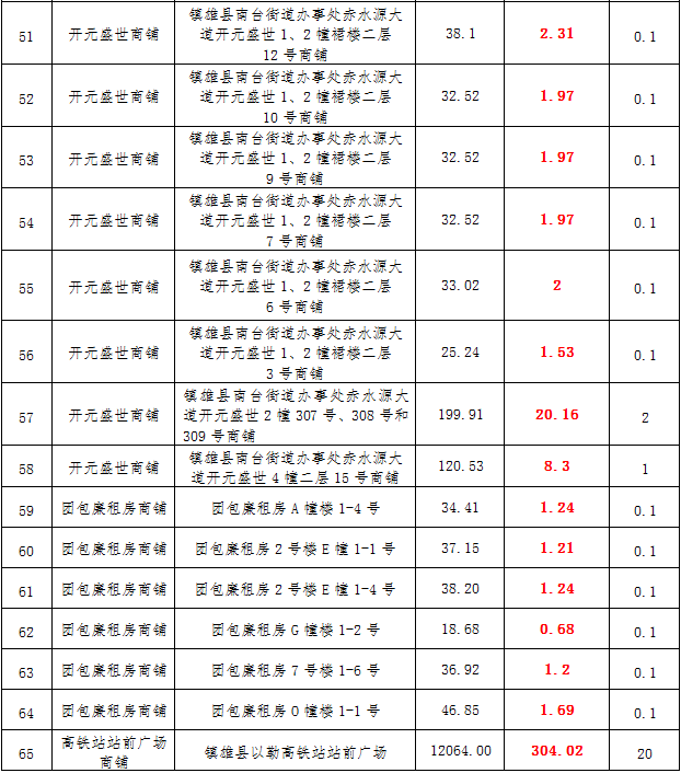 (一)拍租鎮(zhèn)雄發(fā)展集團有限公司國有門面3年期使用權(quán),詳見下表: